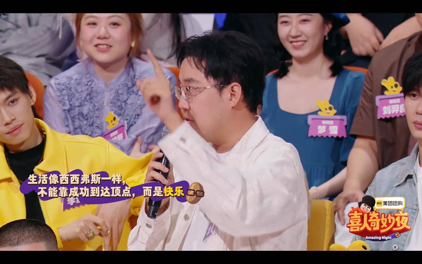 为了找补,李诞还给观众说了一通“歪理”,说了一个直人和怪人的理论,大概的意思就是只要一个怪人身边有一个直人在吐槽,就不会觉得怪,就会把它从闹剧升级成高级的喜剧。